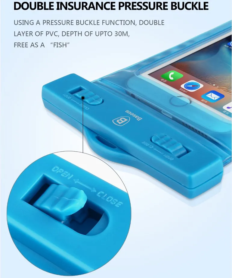 Su geçirmez kılıf kullanılmaya başlanmadan önce kilit kısımlarının iyi bir şekilde kapatılmış olduğuna dikkat edilmelidir.